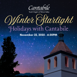 Cantabile starts the holiday season with this annual tradition, showcasing our upper choirs at the Mission Santa Clara de Asís. Join us and hear these beautiful voices soar in the gorgeous acoustics, bringing joy and the magic of the season to all!